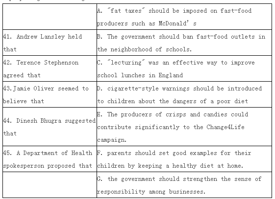 41.E。原文第6段第2行:manufacturer of crisps…. Play acentral role in the Change4life….